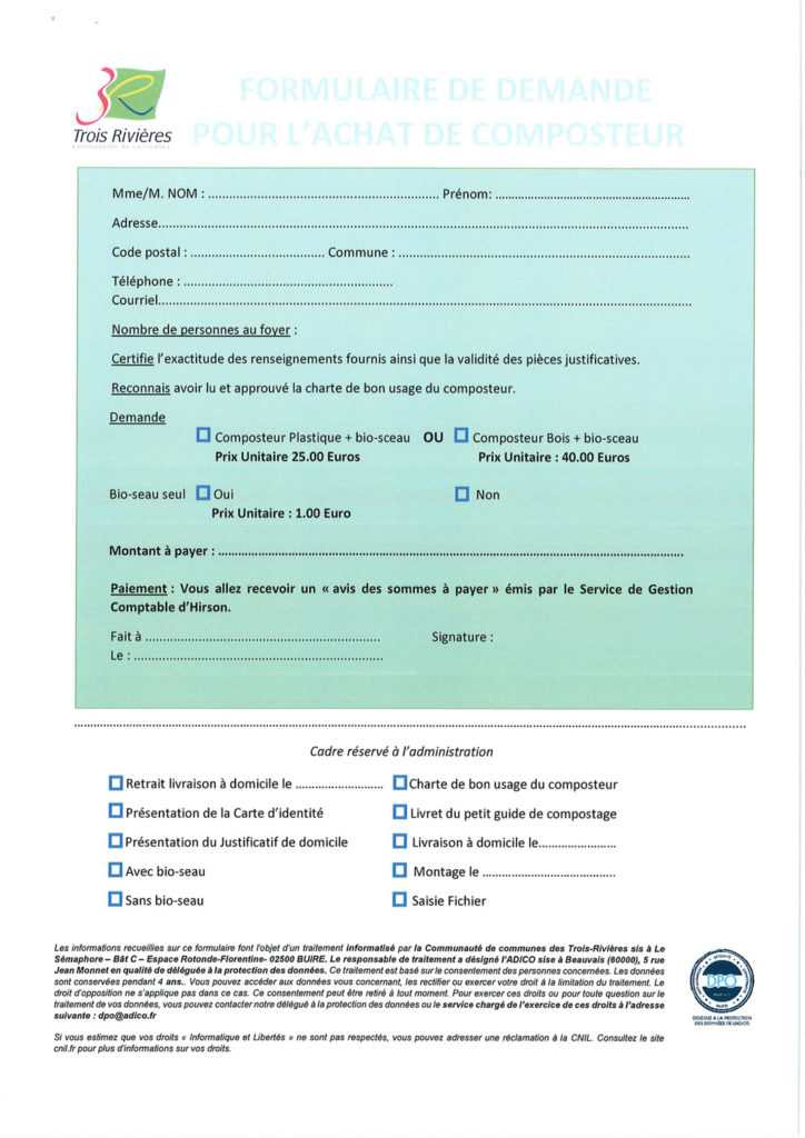 - Déposez-le tout auprès de la Communauté de communes (fournir une pièce d’identité et un justificatif de domicile)