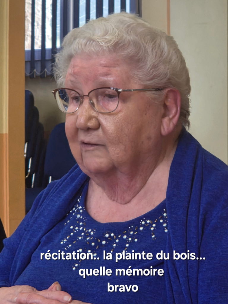 Françoise a récité un poème » la plainte du bois » appris en primaire et qu’elle connaît par coeur alors qu’elle a 90 ans…bravo pour une mémoire întacte.