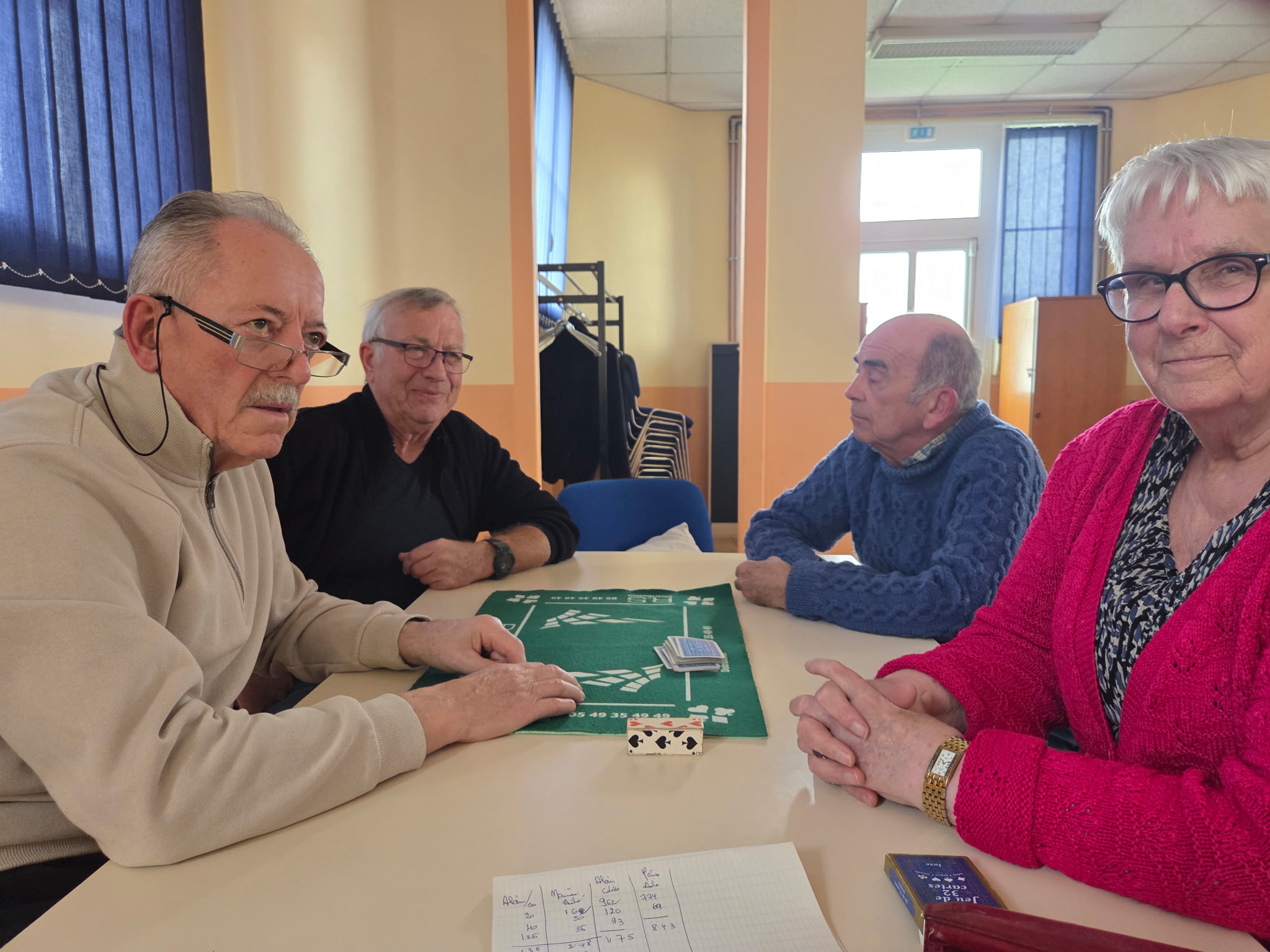 Ce mardi, à la salle Clichy de Buire, les joueurs de belote ont réalisé de beaux scores…beaucoup d’annonces..carrés…cent… Cinquante…etc..